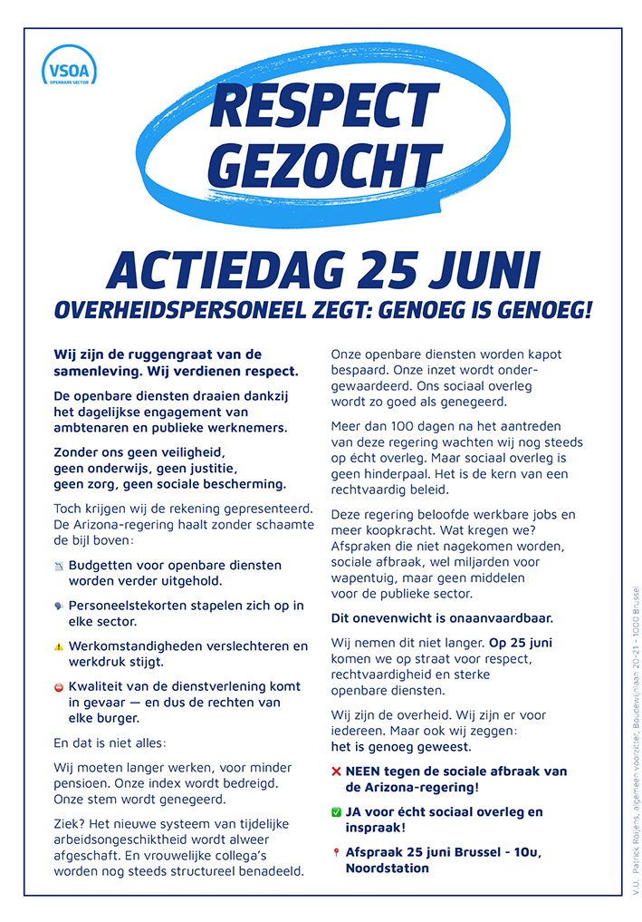 We kiezen, net als de ACLVB, bewust voor een actievorm die zichtbaar en krachtig is, zonder de samenleving te blokkeren en dus zonder een algemene staking aan te kondigen.